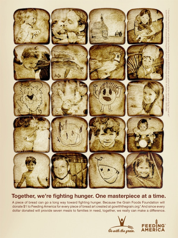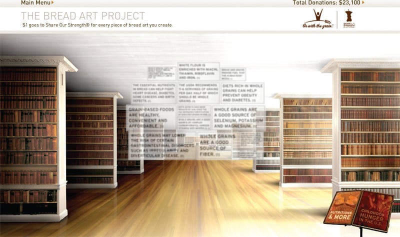 The campaign drove consumer participation with GFF to unprecedented levels. In 2009, visitors to BreadArtProject.com created more than 25,000 pieces of Bread Art and helped raise $100,000 for Feeding America.